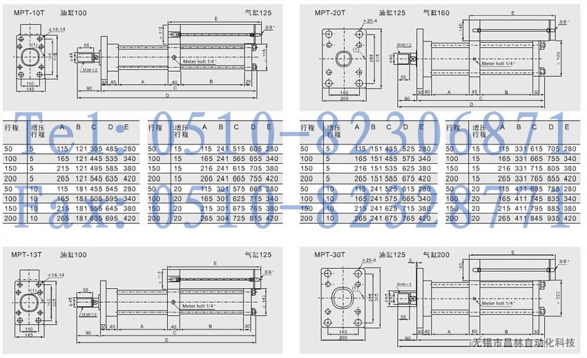 詳細信息 MPT160-100-10-15T,MPT160-100-10-20T,MPT160-100-10-30T,MPT160-100-10-40T,氣液增壓缸