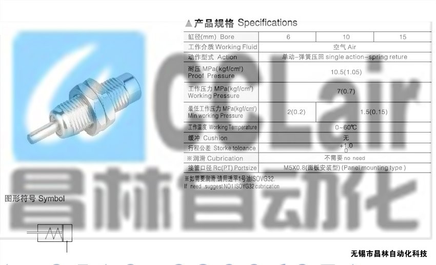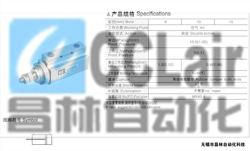 詳細(xì)信息 CJPB10-15,CJPB10-20,CJPB10-30,CJPB15-5,針型單動氣缸