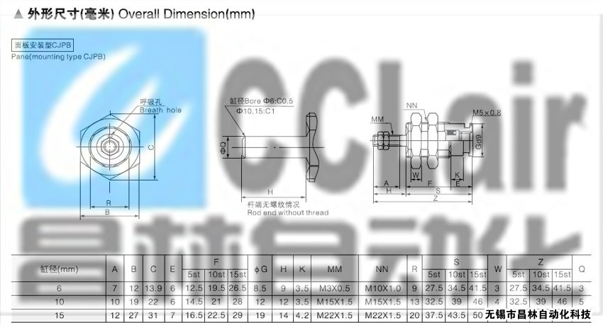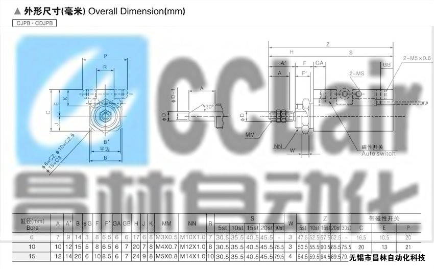 CJPB10-15,CJPB10-20,CJPB10-30,CJPB15-5,針型單動氣缸