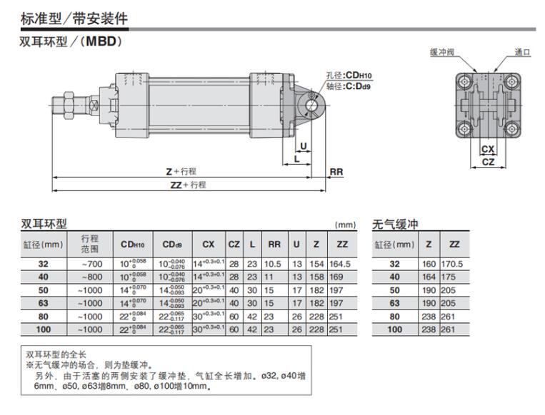 MDBT125-250,MDBT125-300,MDBT125-350,MDBT125-400,標準型氣缸