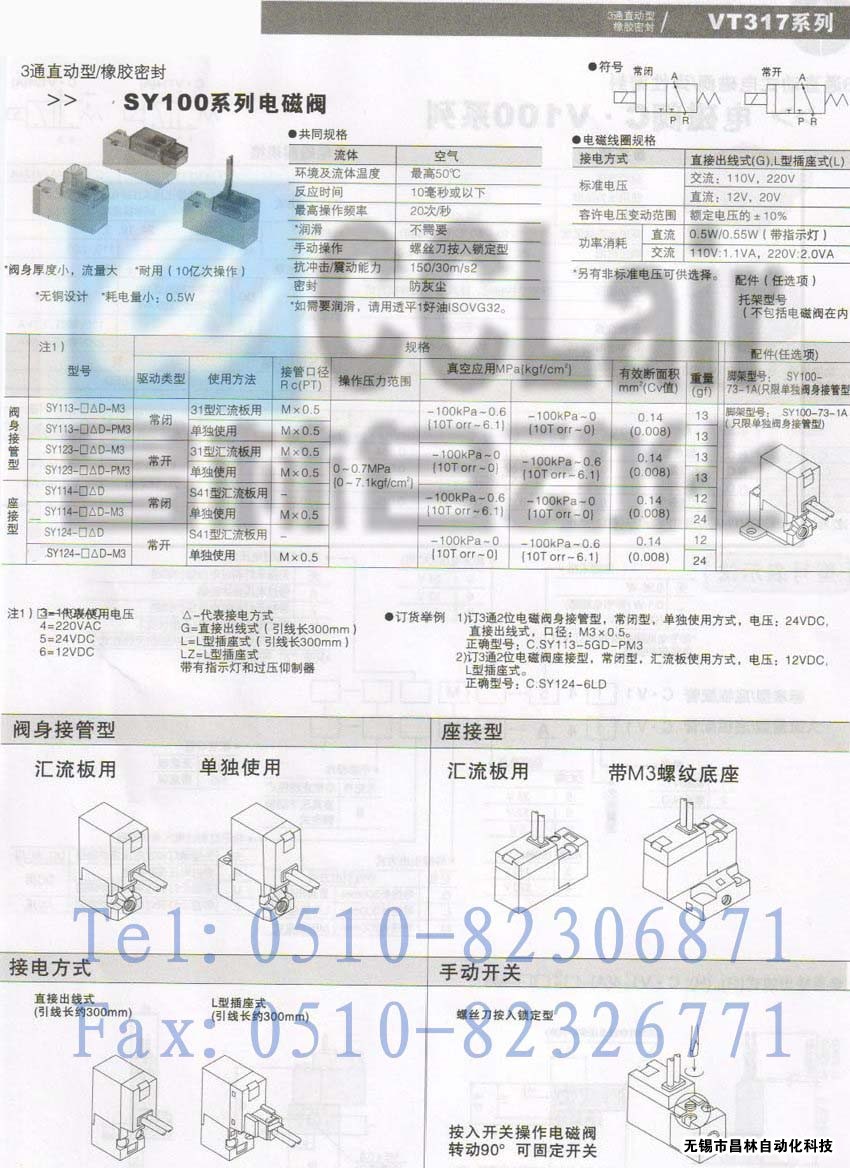 SY114-3GD-M3,SY114-3LD-M3,SY114-3LZD-M3,SY100電磁閥