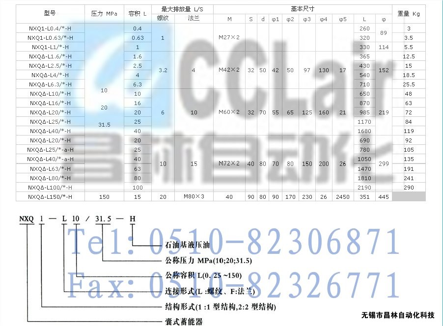NXQ-蓄能器內(nèi)腔由皮囊分為兩個(gè)部分:囊內(nèi)裝氮?dú)?,囊外充液壓油。?dāng)液壓泵將液壓油壓入畜能器時(shí),皮囊就受壓變形,氣體體積隨壓力增加而減少,液壓油被逐漸儲(chǔ)存。若液壓系統(tǒng)工作需要液壓油,則畜能器將液壓油排出,使系統(tǒng)的能量得到補(bǔ)償