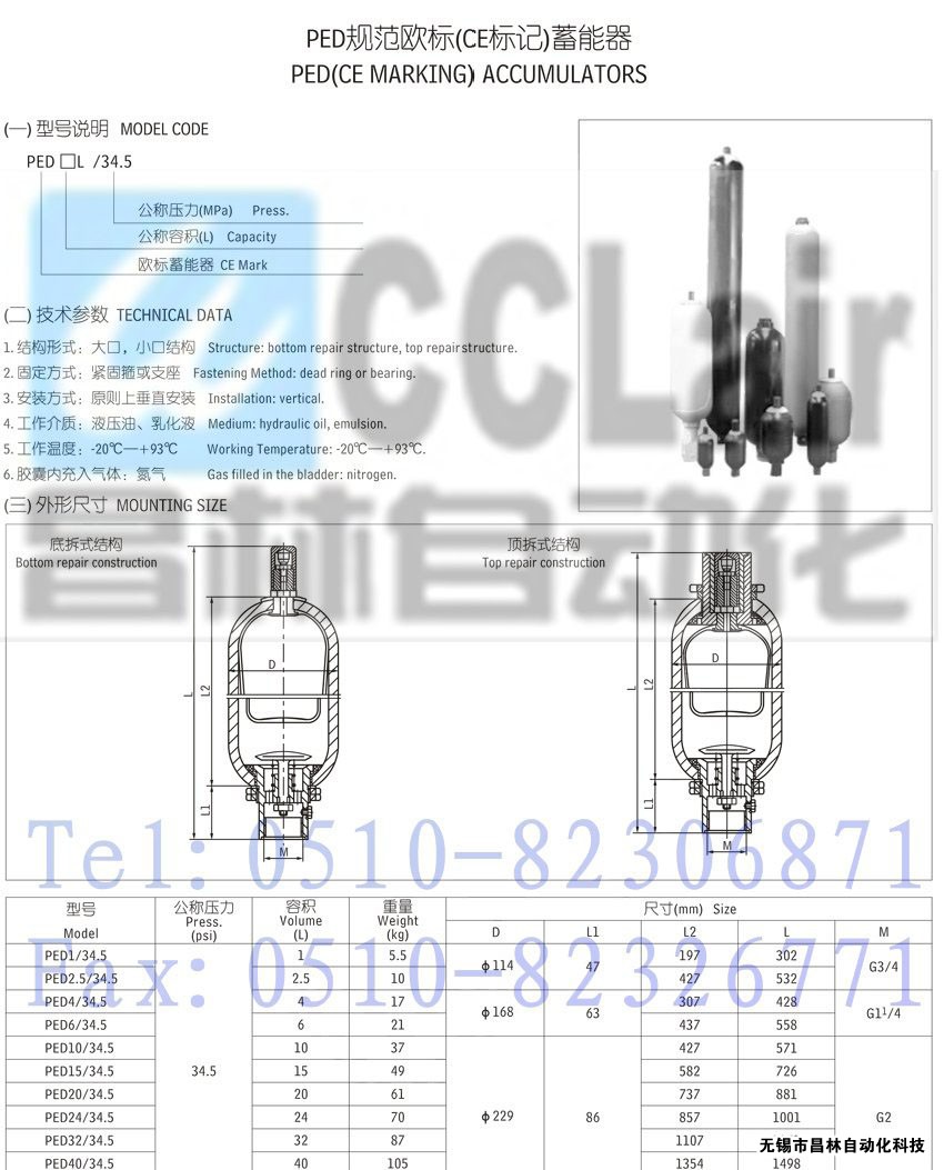 詳細信息 PED24/34.5,PED32/34.5,PED40/34.5,PED50/34.5,PED20/34.5,規(guī)范歐標(CE標記)蓄能器,生產(chǎn)廠家,價格