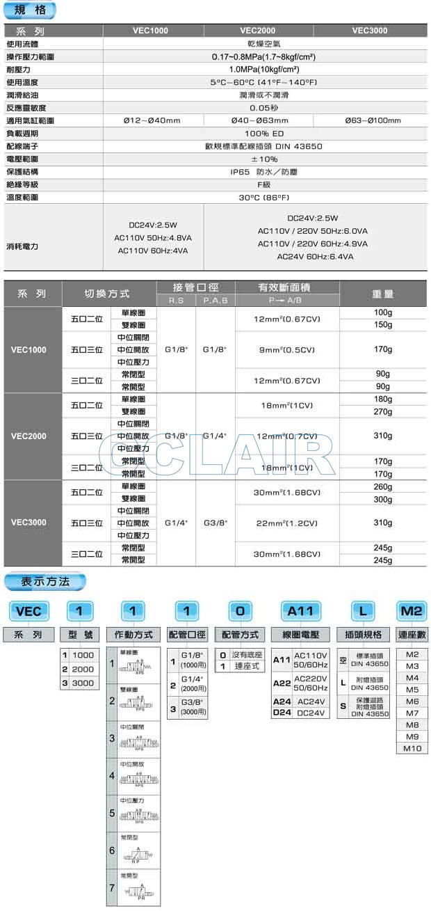 VEC1110,VEC1120,VEC1130,VEC1210,VEC1220,VEC1230,VEC1310,電磁閥,