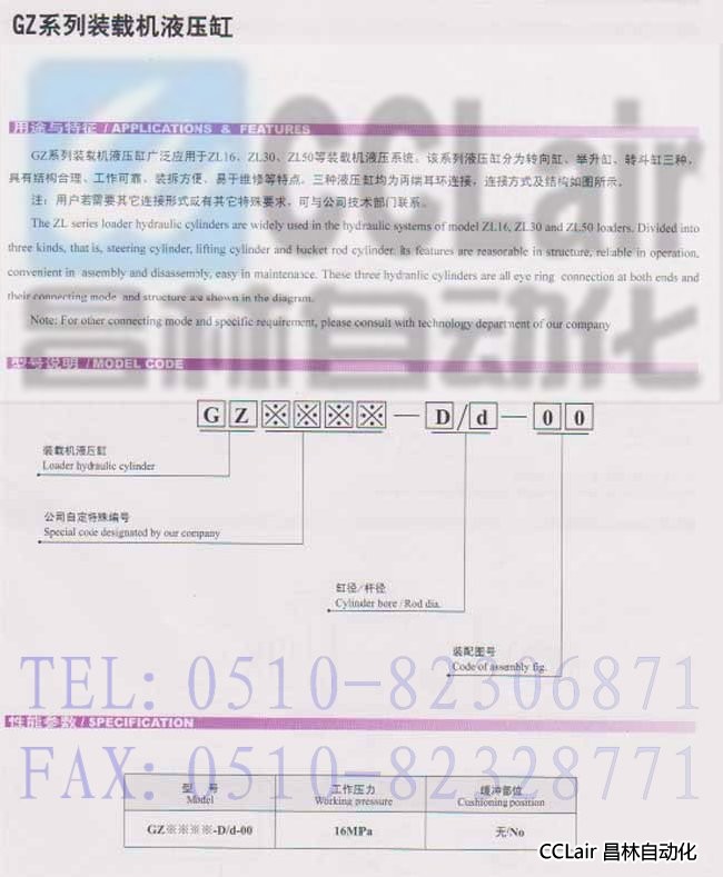 詳細(xì)信息 GZ1677-200/110,GZ2822-100/55,GZ2133-110/63,裝載機(jī)液壓缸