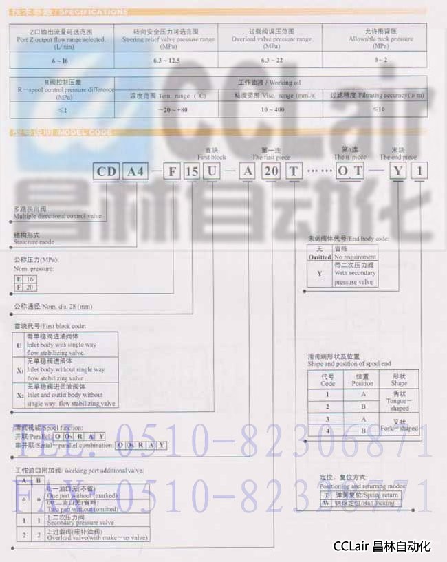 詳細(xì)信息 CDA4-F15U,CDA4-F15X1,CDA4-F15X2,多路換向閥,