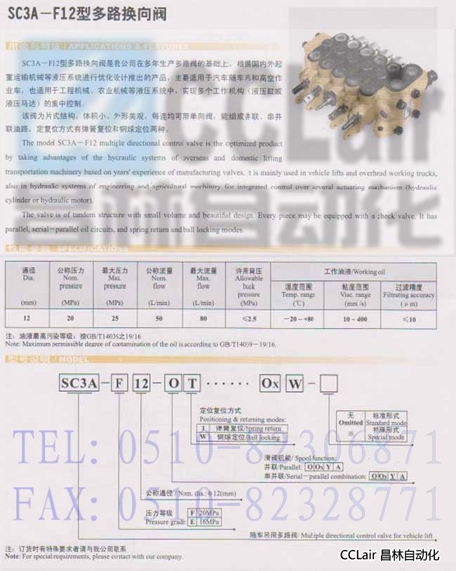 詳細信息 SC3A-F12-OT,SC3A-F12-OW,SC3A-E12-OT,SC3A-E12-OW,多路換向閥,