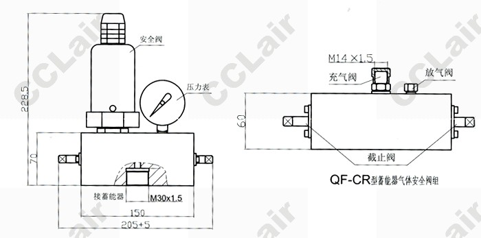 QF-CR系列蓄能器用氣體安全閥是用來給蓄能器充氣、放氣、檢測氣體壓力外,主要是用來防止蓄能器超壓。