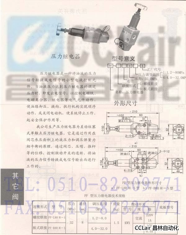 PF-L8H1,PF-B8H1,PF-L8H4,PF-B8H4,壓力繼電器
