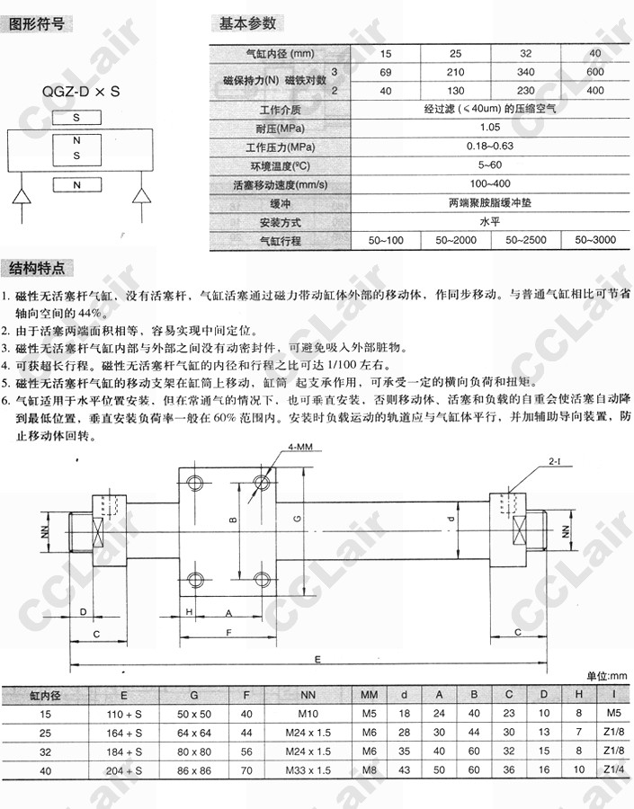 詳細(xì)信息 QGZ-15,QGZ-25,QGZ-32,QGZ-40,磁性無活塞桿氣缸