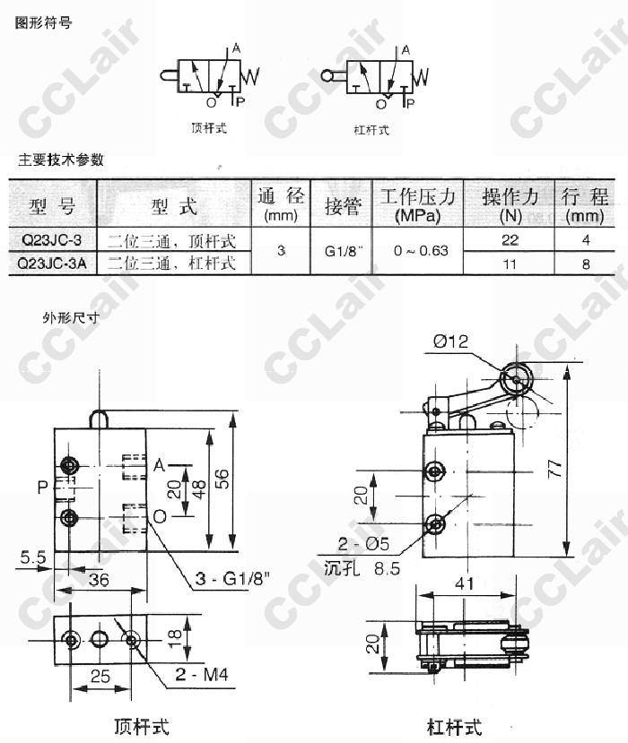 Q23JC-3,Q23JC-3A,二位三通機控換向閥