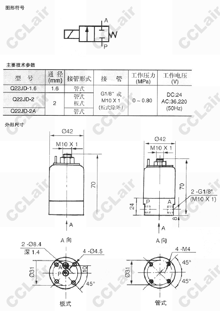 Q22JD-1.6,Q22JD-2,Q22JD-2A,二位二通電磁閥