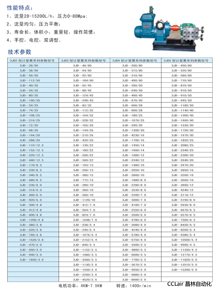 詳細(xì)信息 3JD-316/6.0,3JD-360/10,3JD-3530/8.0,3JD-4540/12,3JD-460/6.0,柱塞計(jì)量泵