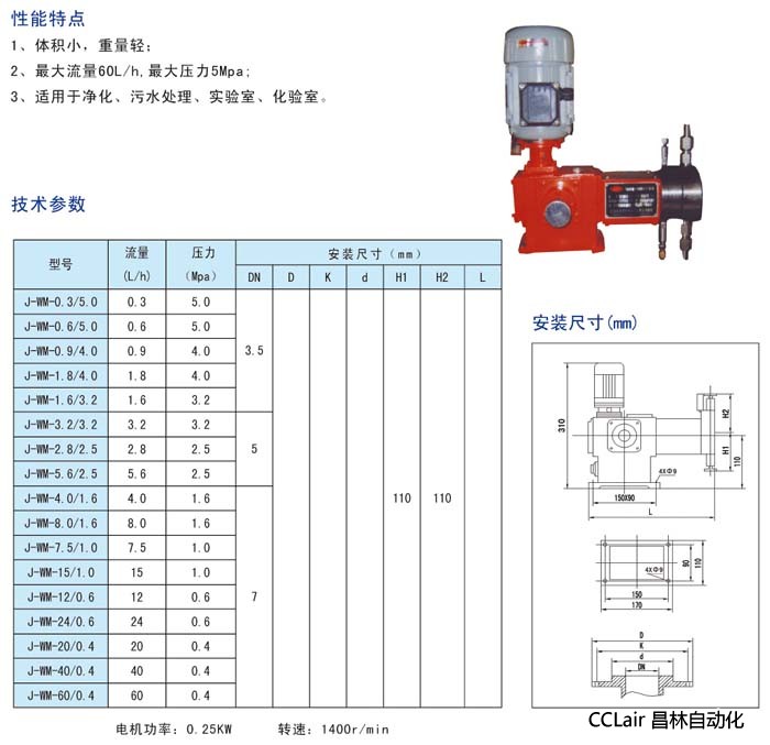 詳細(xì)信息 J-WM-12/0.6,J-WM-24/0.6,J-WM-20/0.4,液壓隔膜計(jì)量泵