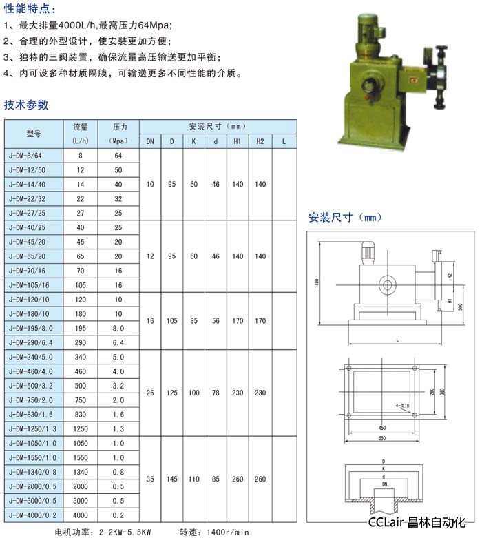 詳細(xì)信息 J-DM-830/1.6,J-DM-1250/1.3,J-DM-1050/1.0,液壓隔膜計量泵