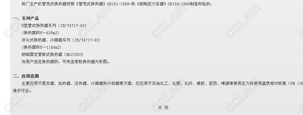 詳細(xì)信息 GB151-1999,GB150-1998,JB/T4717-92,HG21503,管殼式換熱器