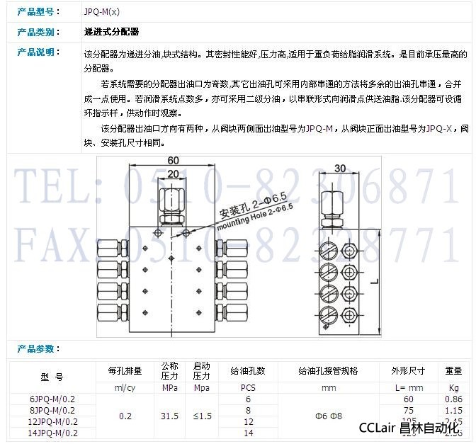 詳細信息 6JPQ-M/0.2,8JPQ-M/0.2,12JPQ-M/0.2,14JPQ-M/0.2,塊式遞進分配器