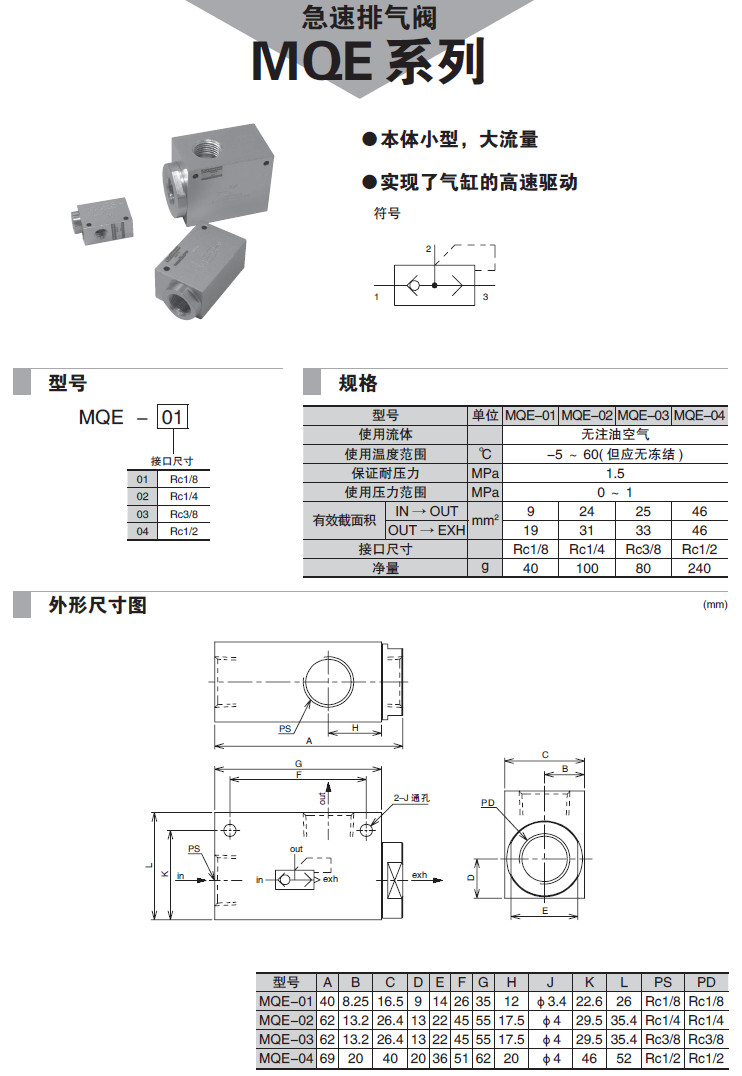 詳細信息 MQE-01,MQE-02,MQE-03,MQE-04,急速排氣閥