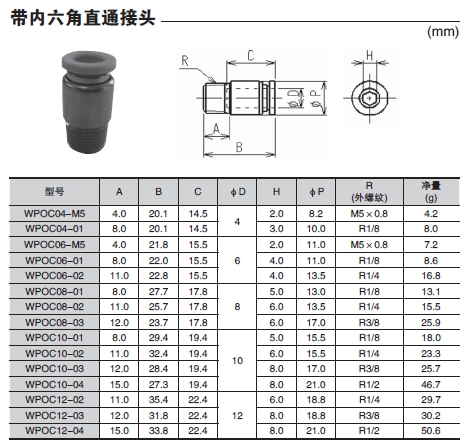 WPOC04-M5,WPOC04-01,WPOC06-M5,WPOC06-01,WPOC06-02,WPOC08-01,WPOC08-02,帶內(nèi)六角直通接頭