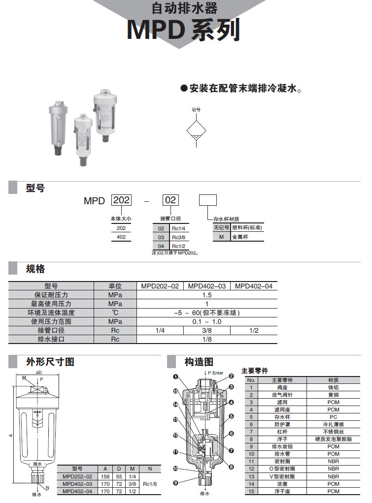 MPD202-02,MPD402-03,MPD402-04,MPD202-02M,MPD402-03M,MPD402-04M,自動(dòng)排水器