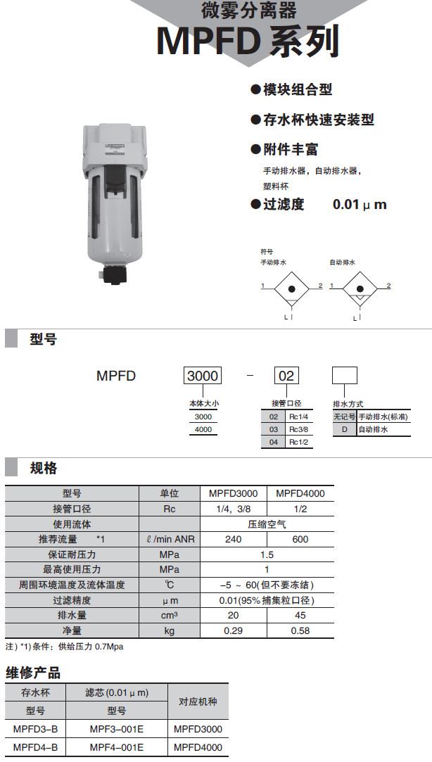 詳細(xì)信息 MPFD3000-02,MPFD3000-03,MPFD3000-04,MPFD4000-02,MPFD4000-03,MPFD4000-04,微霧分離器