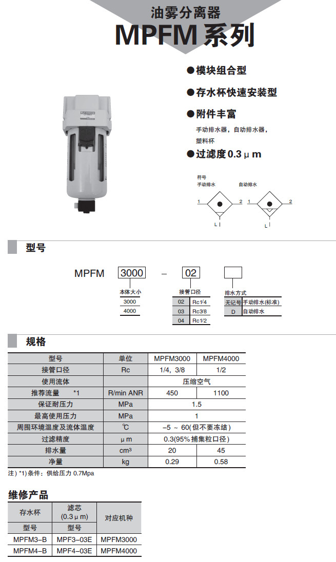 詳細(xì)信息 MPFM3000-02,MPFM3000-03,MPFM3000-04,MPFM4000-02,MPFM4000-03,MPFM4000-04,油霧分離器