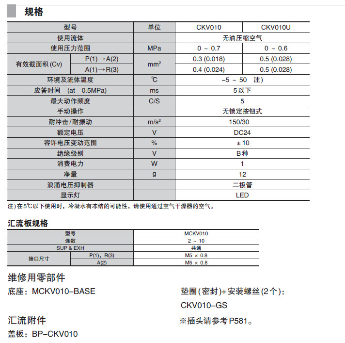CKV010-4P,CKV010-4E,CKV010-4L,CKV010U-4P,CKV010U-4E,CKV010U-4L,小型3通直動(dòng)式電磁閥