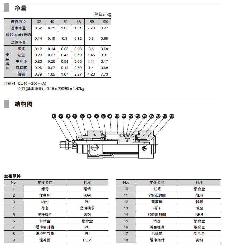 EUZNCF-32-25,EUZNCF-32-40,EUZNCF-32-50,EUZNCF-32-80,EUZNCF-32-100,EUZNCF-32-125,標準氣缸
