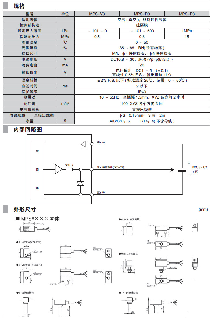 MPS-V8T-AG-XX,MPS-V8A-AG-XE,MPS-R8B-AG-XX,MPS-P8C-AG-XX,分離型壓力傳感頭