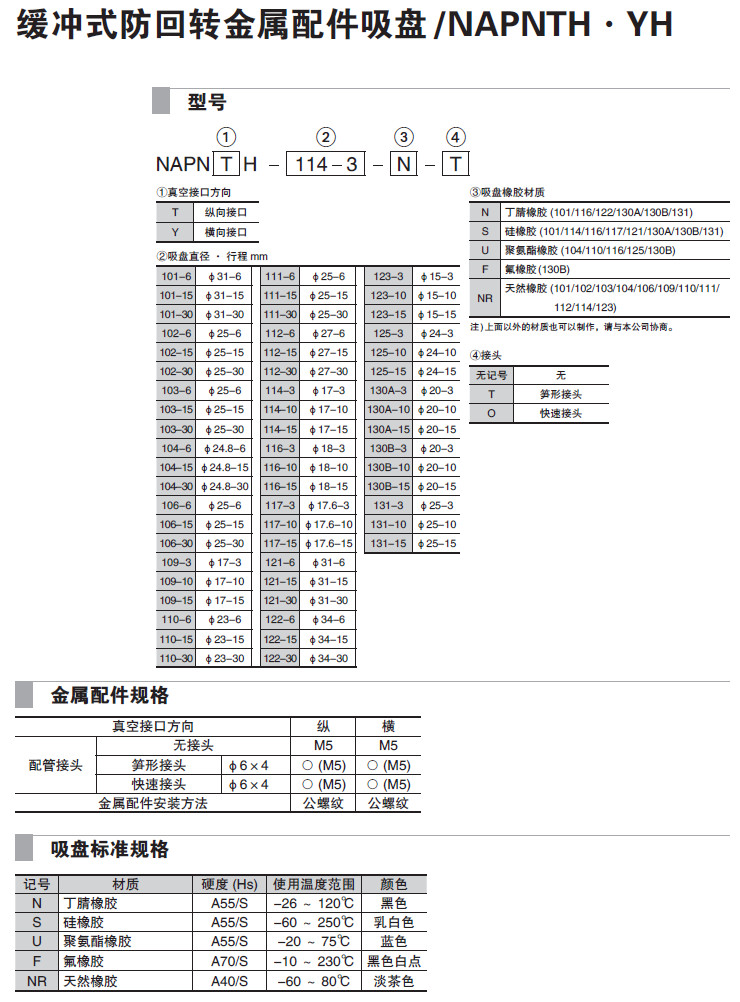 NAPNTH-101,NAPNTH-122,NAPNTH-110,NAPNYH-102,NAPNYH-111,NAPNYH-125,吸盤