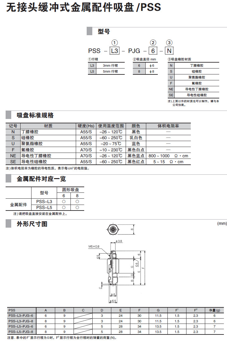 PSS-L3-PJG-6,PSS-L3-PJG-8,PSS-L5-PJG-6,PSS-L5-PJG-8,吸盤