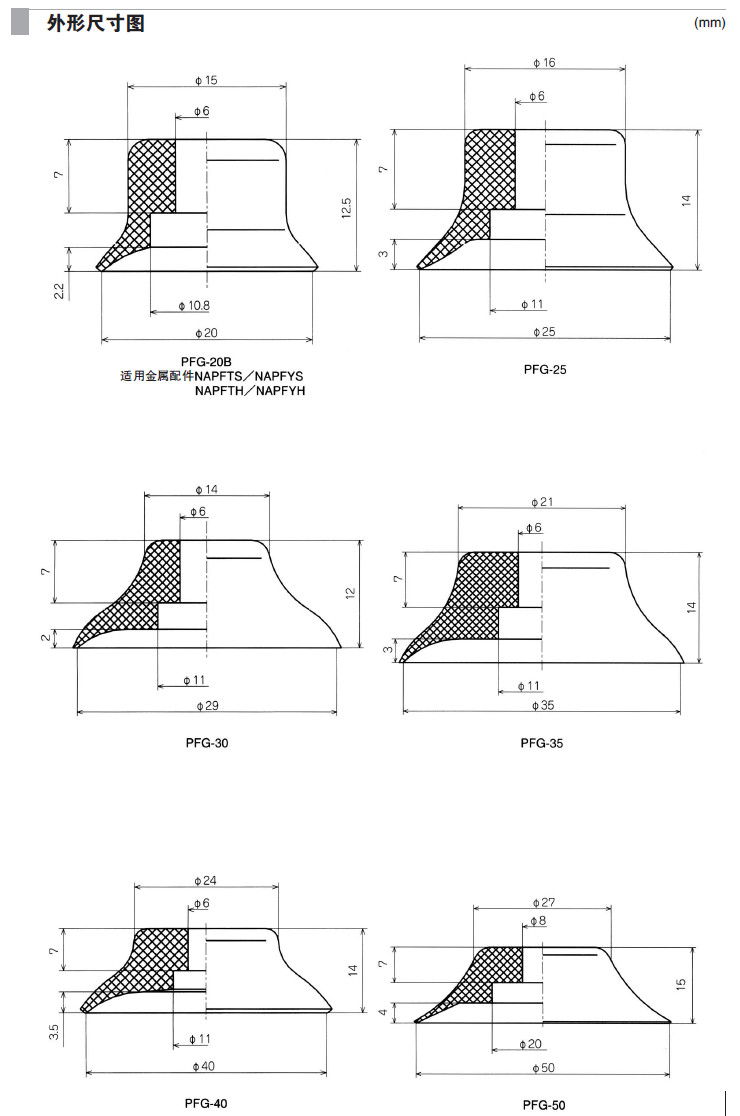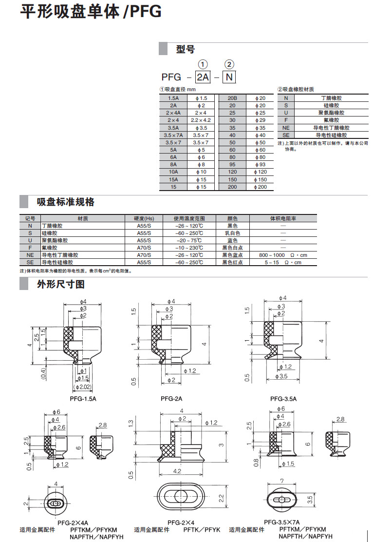 PFG-1.5A,PFG-2A,PFG-2*4A,PFG-3.5A,PFG-3.5*7,PFG-5A,PFG-6A,PFG-8A,PFG-15,吸盤