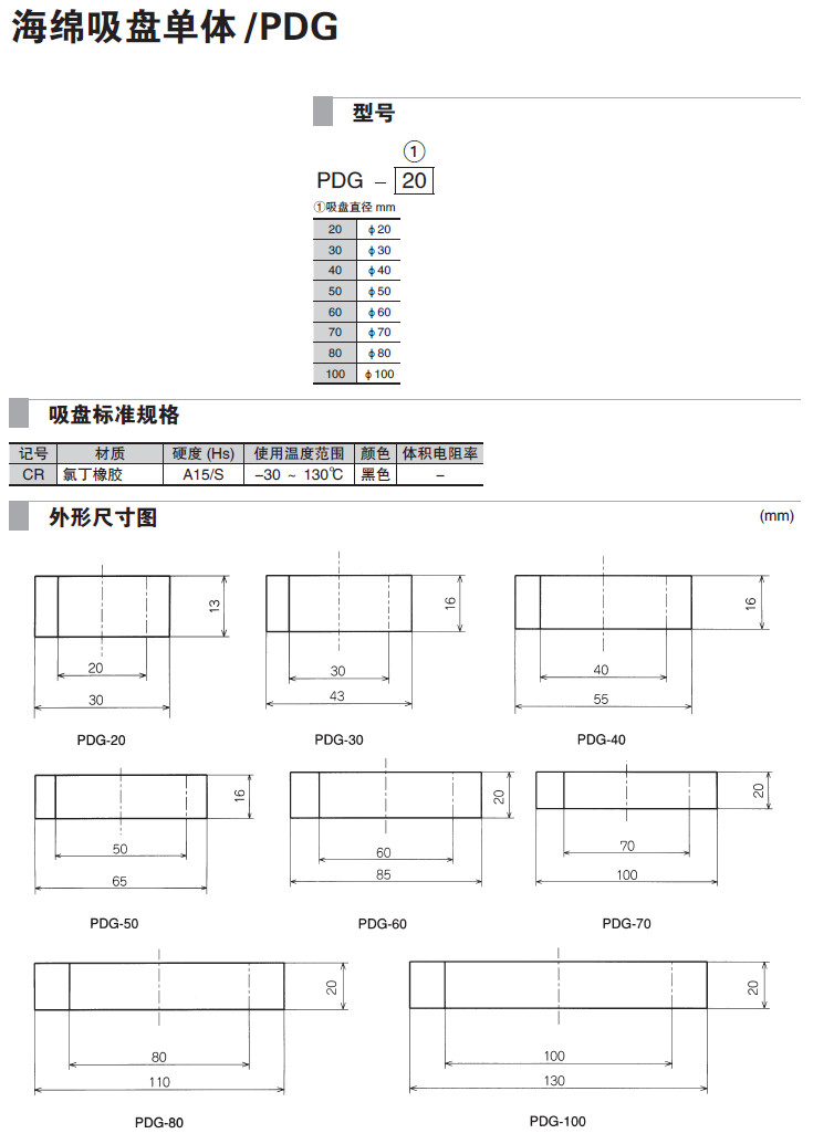PDG-20,PDG-30,PDG-40,PDG-50,PDG-60,PDG-70,PDG-80,PDG-100,吸盤
