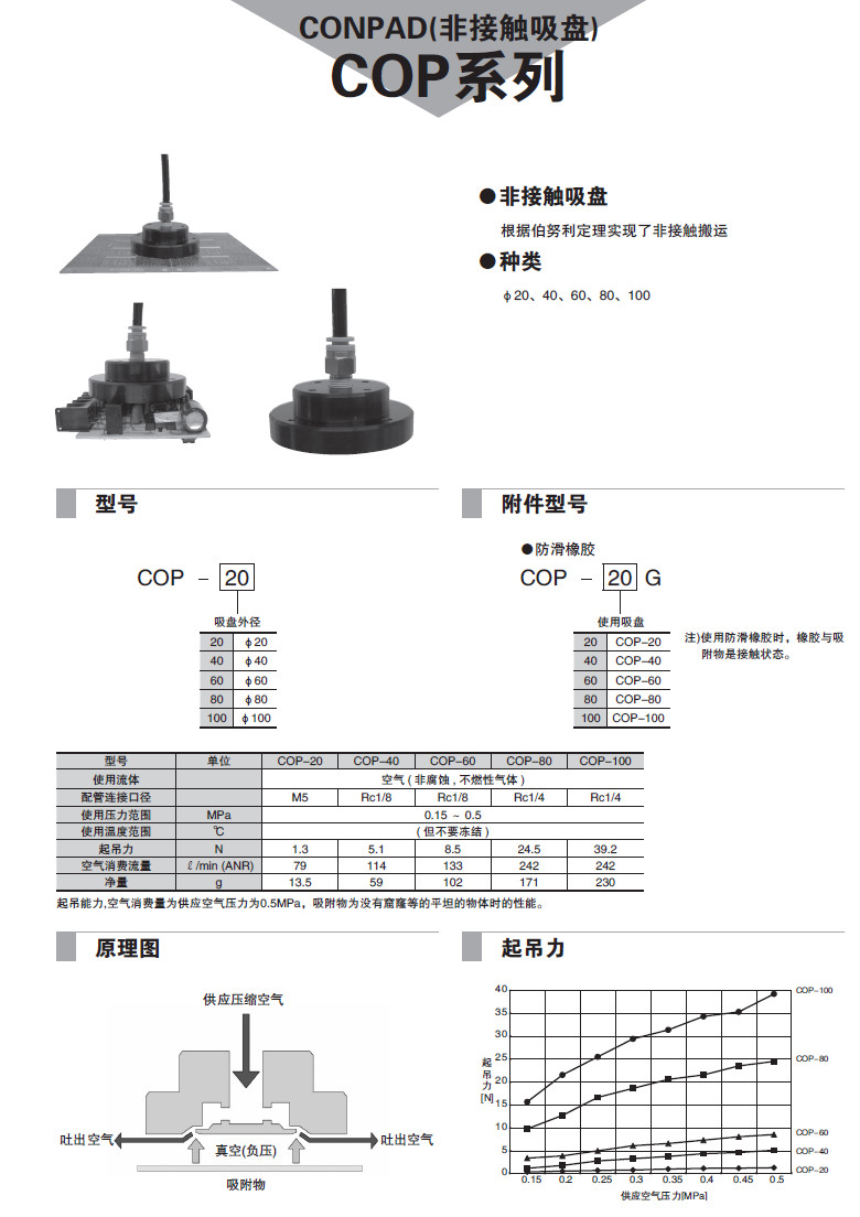 COP-20,COP-40,COP-60,COP-80,COP-100,非接觸吸盤