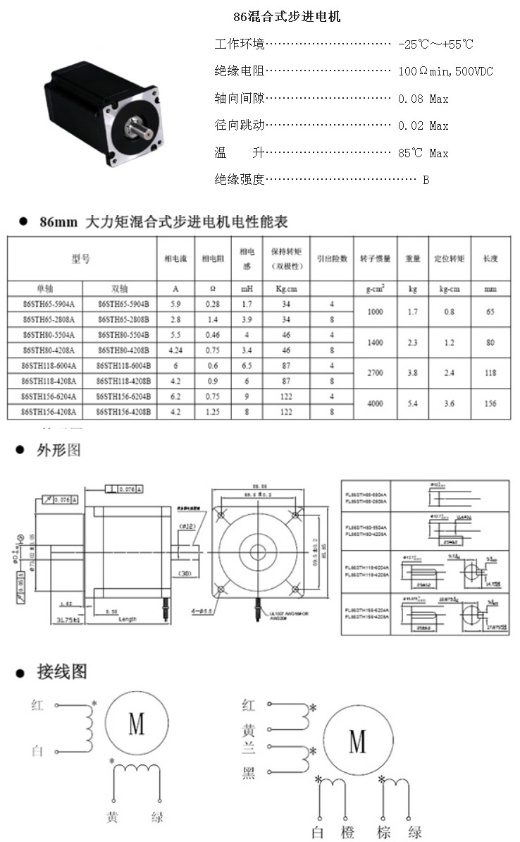86STH65-5904A,86STH65-2808A,86STH80-5504B,86STH80-4208B,86混合式步進電機