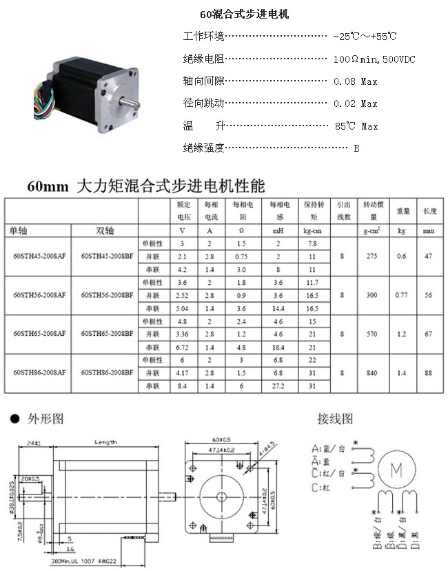 您當(dāng)前的位置:首頁 » 產(chǎn)品&解決方案 » 60STH45-200SAF,60STH56-200SAF,60STH65-200SBF,60STH86-200SBF,60混合式步進(jìn)電機