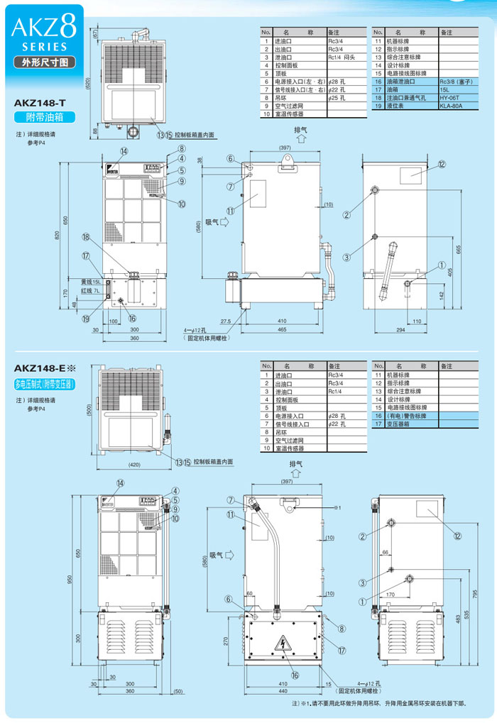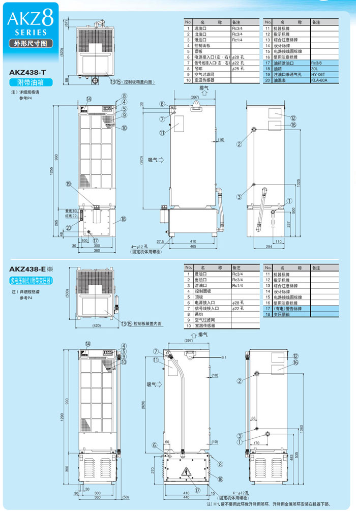詳細信息 AKZ148,AKZ328,AKZ438,AKZ148-B,AKZ328-B,AKZ438-B,AKZ148-C,DAIKIN變頻油冷卻機