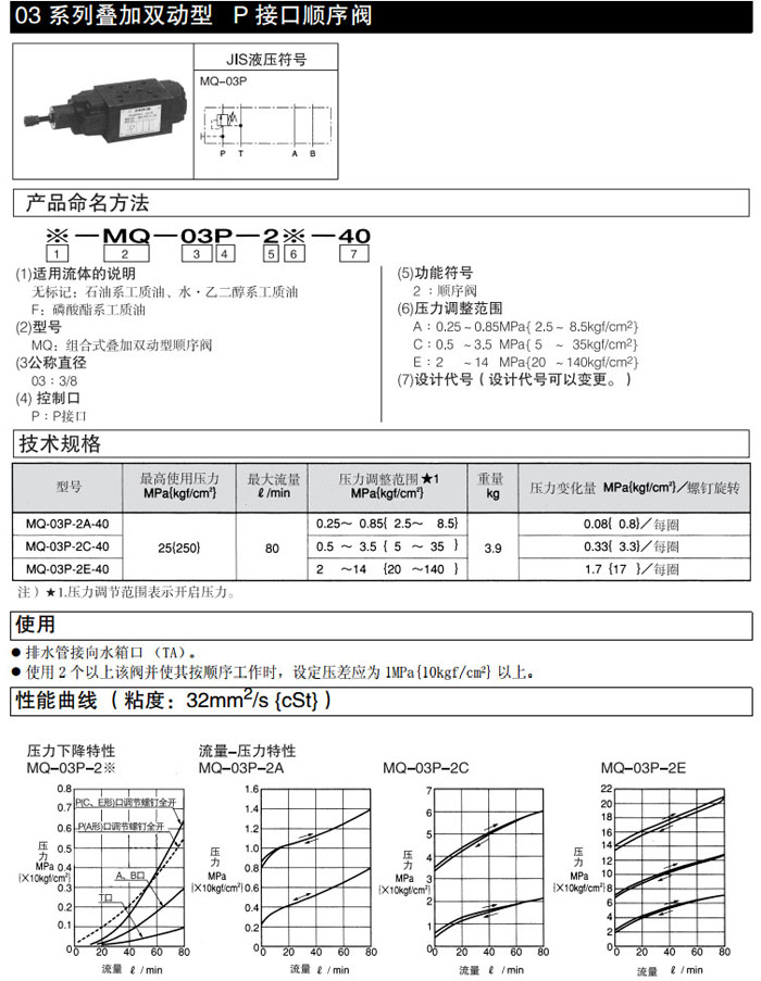 詳細信息 MQ-03P-2A-40,MQ-03P-2C-40,MQ-03P-2E-40,DAIKIN疊加雙動型順序閥