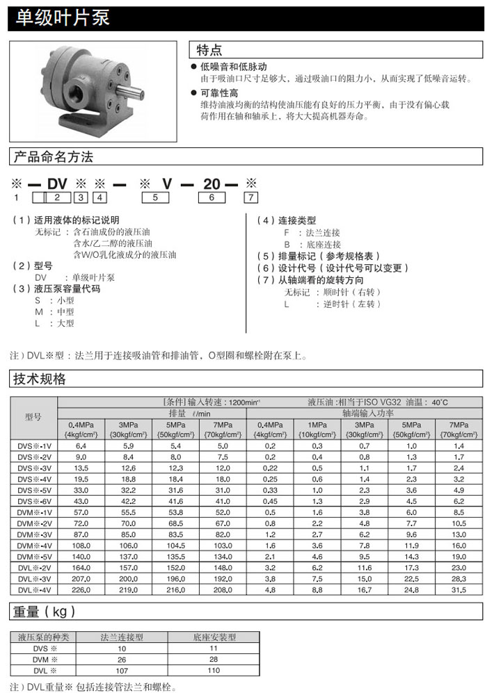 DVMF-1V,DVMF-2V,DVMF-3V,DVMF-4V,DVMF-5V,DVMF-6V,DVMB-1V,DVMB-2V,DVMB-3V,DVMB-4V,DAIKIN單級(jí)葉片泵