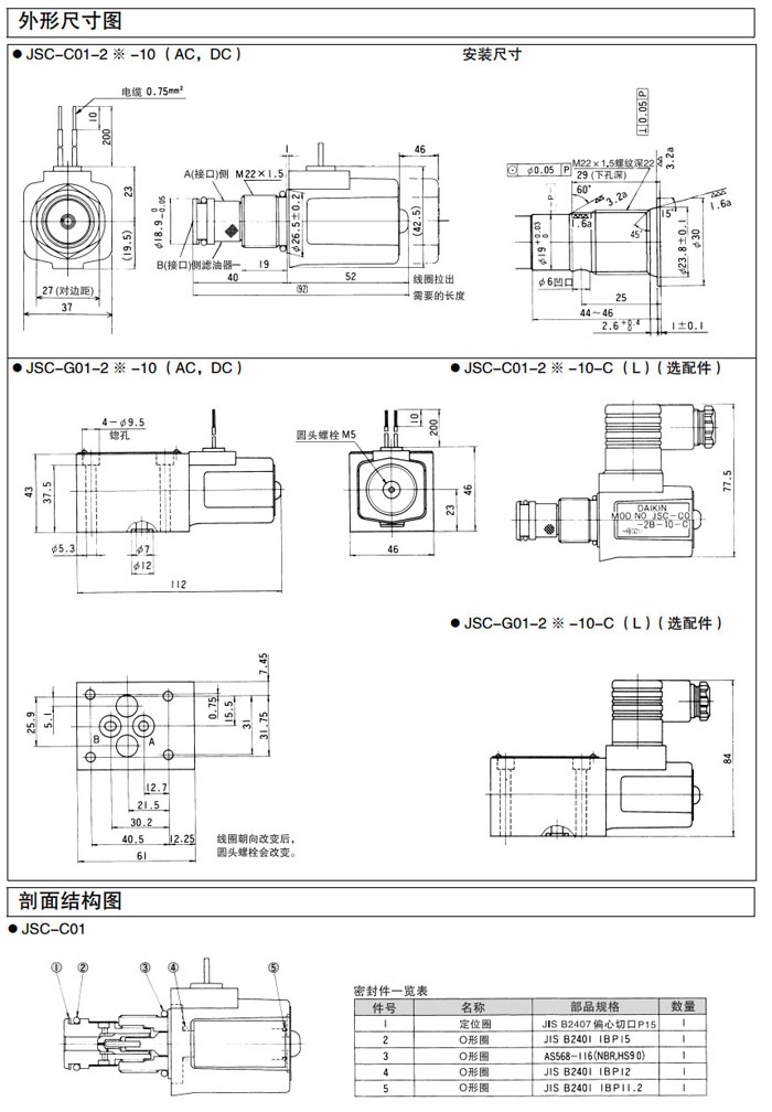 JSC-G01,JSC-C01,JSC-G01-2A-10,JSC-C01-2A-10,JSC-G01-2P-10,JSC-C01-2P-10,DAIKIN板裝式電磁閥