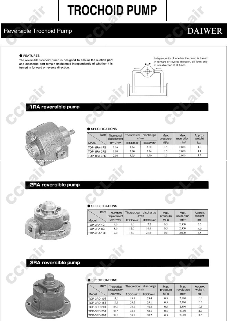 型號: TOP-1RA-1FS,TOP-1RA-2FS,TOP-1RA-3FS,DAIWER雙向旋轉泵