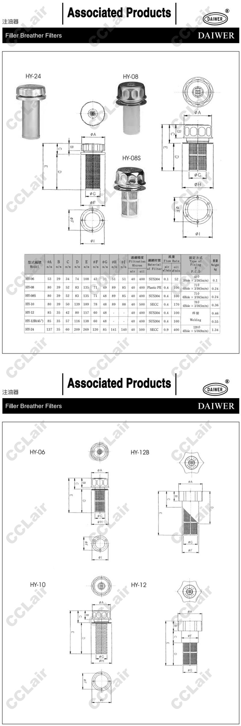 HY-06,HY-08,HY-08S,HY-10,HY-12,HY-12B,HY-24,DAIWER注油器