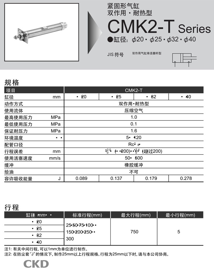 CMK2-T-00-20-25,CMK2-T-00-20-50,CMK2-T-00-20-75,CMK2-T-00-20-100,CMK2-T-00-20-150,CKD緊固型氣缸