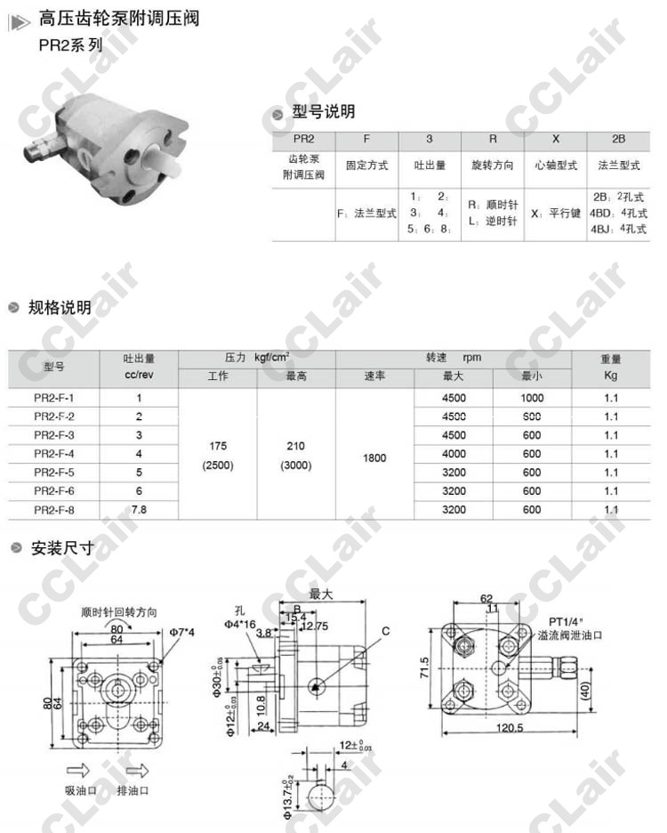 PR2-F-1,PR2-F-2,PR2-F-3,PR2-F-4,PR2-F-5,PR2-F-6,PR2-F-8,高壓齒輪泵附調(diào)壓閥