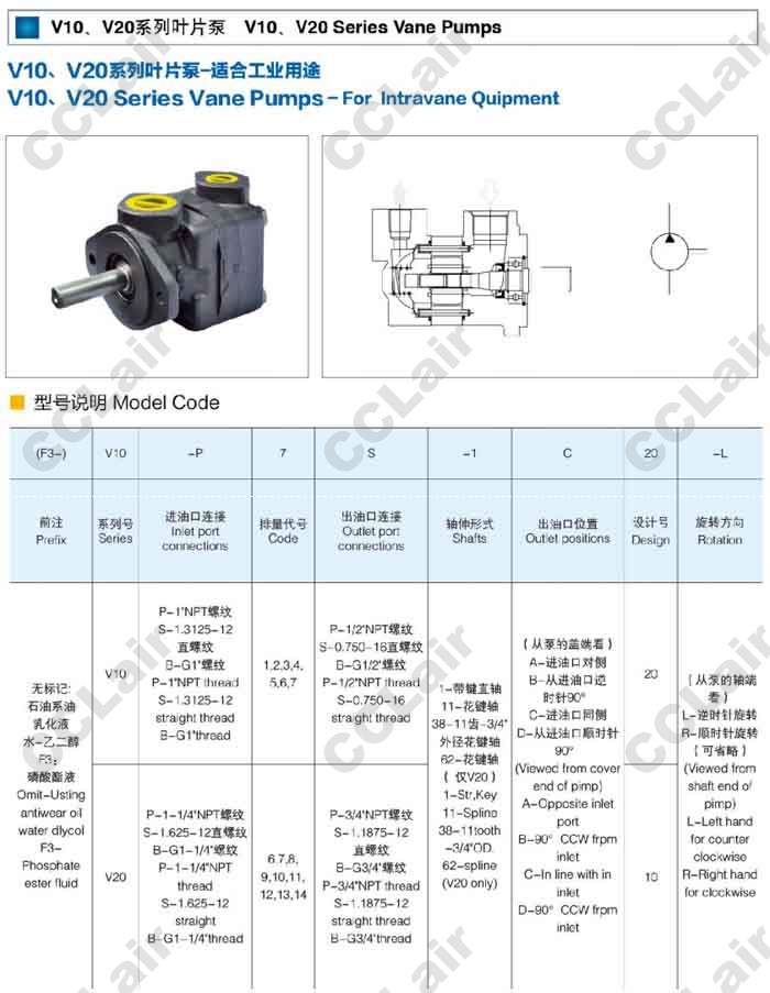 V10,V20,V10-P7S-11D20-L,V10-P7S-62D20-L,V20-P10S-62B20-L,葉片泵
