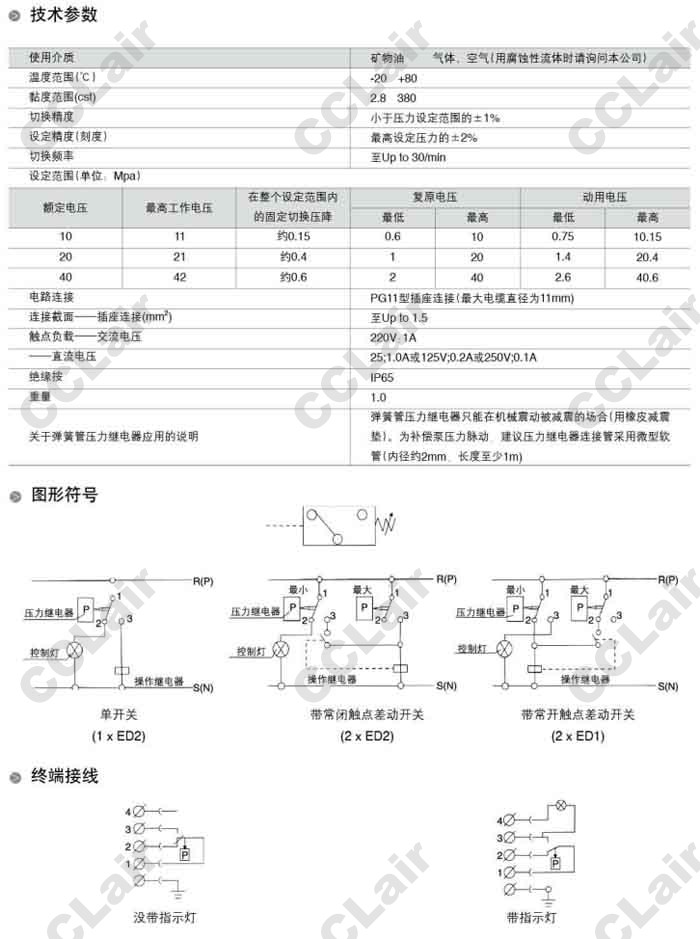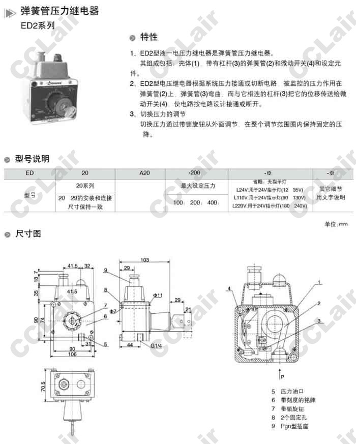 詳細(xì)信息 ED20A20-100,ED20A20-200,ED20A20-400,ED20A20-100-L220V,ED20A20-100-L110V,彈簧管壓力繼電器