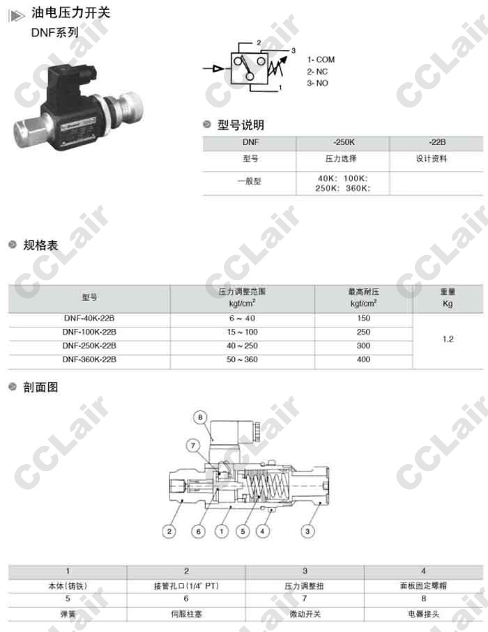 詳細(xì)信息 DNF-40K-22B,DNF-100K-22B,DNF-250K-22B,DNF-360K-22B,油電壓力開關(guān),無錫昌林