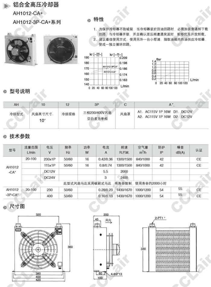詳細(xì)信息 AH1012-CA1,AH1012-CA2,AH1012-CD1,AH1012-CD2,AH1012-3P-CA1,高壓冷卻器