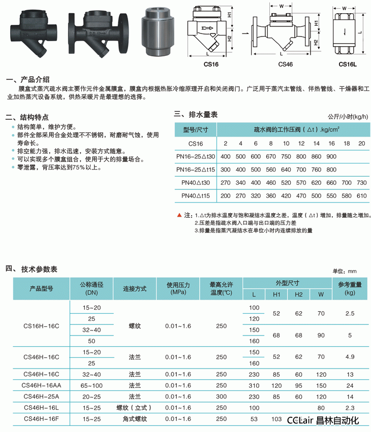 CS16H-16C,CS46H-16C,CS46H-16AA,CS46H-25A,CS46H-16L,CS46H-16F,膜合式蒸汽疏水閥