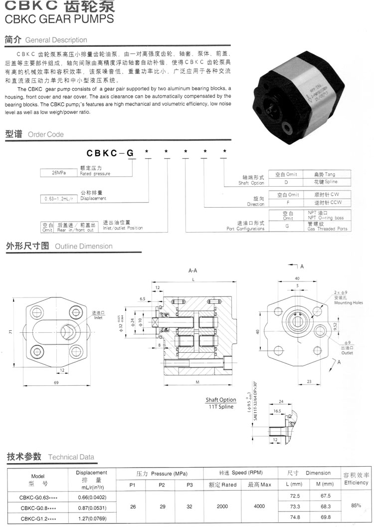 詳細(xì)信息 CBKC-G0.63,CBKC-G0.8,CBKC-G1.2,齒輪泵